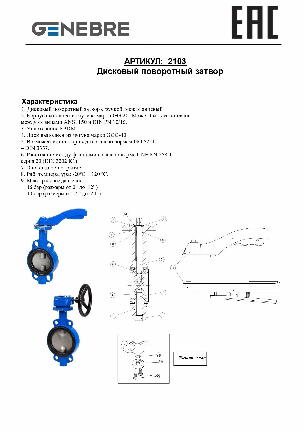 | 2103 14 | DN150 | PN16 | Рукоятка | 56 | 300 | по запросу | По запросу | |